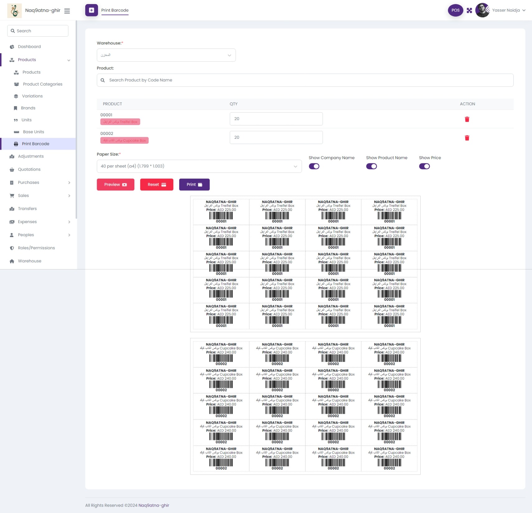 • Print barcodes and add them to products easily